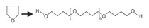 The unit is tetrahydrofuran (THF); water (H-O-H) caps the ends.
